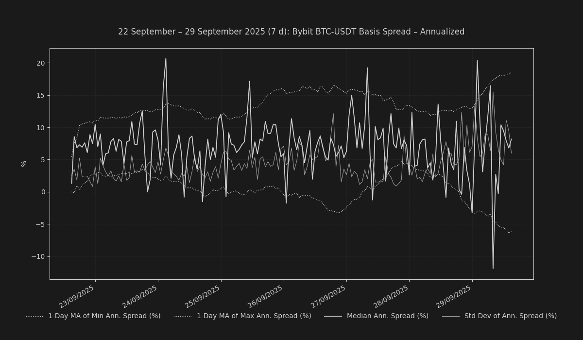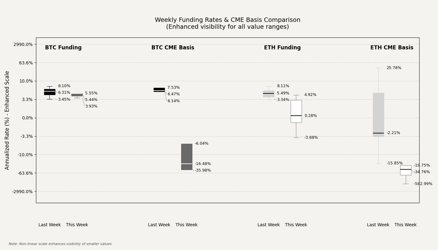 This contrasts with offshore venues, where the Bybit term structure for Bitcoin closed the week with a slight discount of -1.8%. Ethereum's basis, however, was a notable outlier, closing at a steep 36.4% premium, indicating a significant divergence in positioning for forward-dated ETH exposure between different market segments.